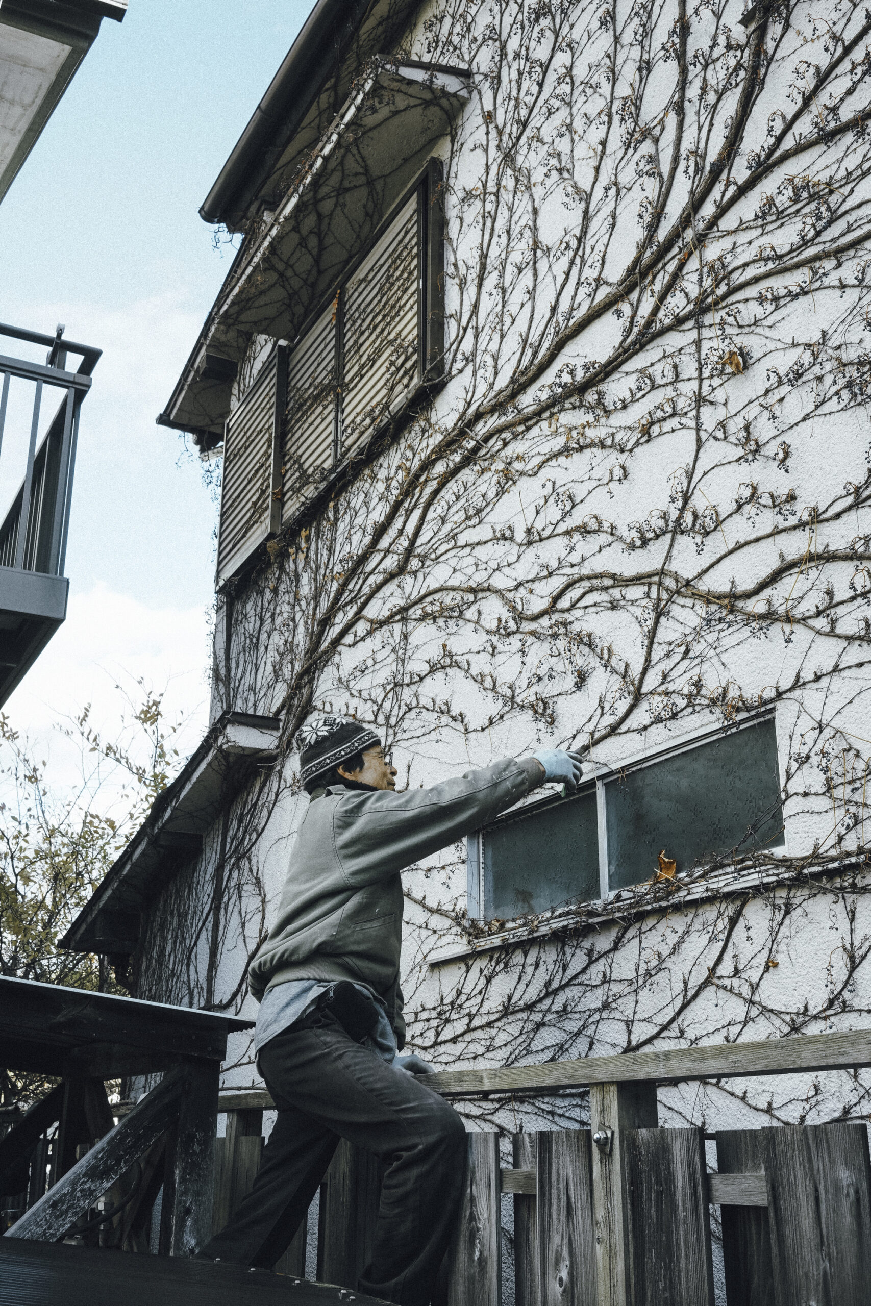 畳が腐っていたので床板を剥がすことになったり、2階の畳を窓から降ろしたり、予定していたお掃除以上の重労働になってしまいましたが、楽しく作業してくれた皆さまに感謝です。また、納屋を覆っていた「蔦(つた)」も驚くほど完璧に除去できました。これまで屋根に上ることもできていなかったので感動です。おかげで、1月の改修に向けて良いスタートを切ることができました。