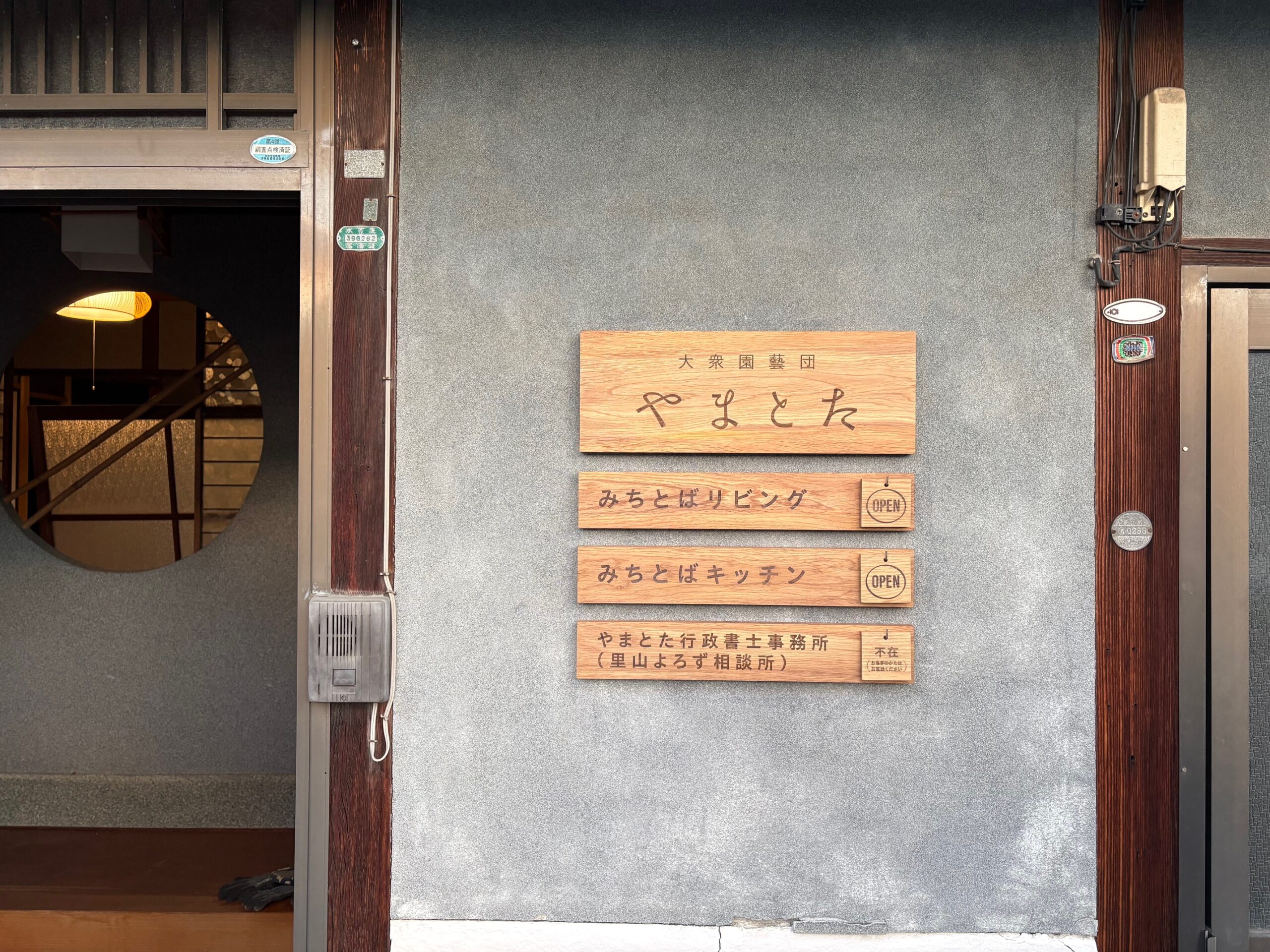 また、なかの工芸さん(北区の看板屋さん)が「やまとた」の木製看板もつけてくれました。参加者からも「めっちゃいい!」とお褒めの言葉をたくさんいただきました。実はこれ、道場町に生えていたコナラの木なんですよね。六甲山クリエイティブラボ(野口さん、ありがとう!)と共同で材料にもこだわってくれました。地域の里山の木材を使うのが「やまとた」の大事なテーマなので、これからも意識していきたいです。