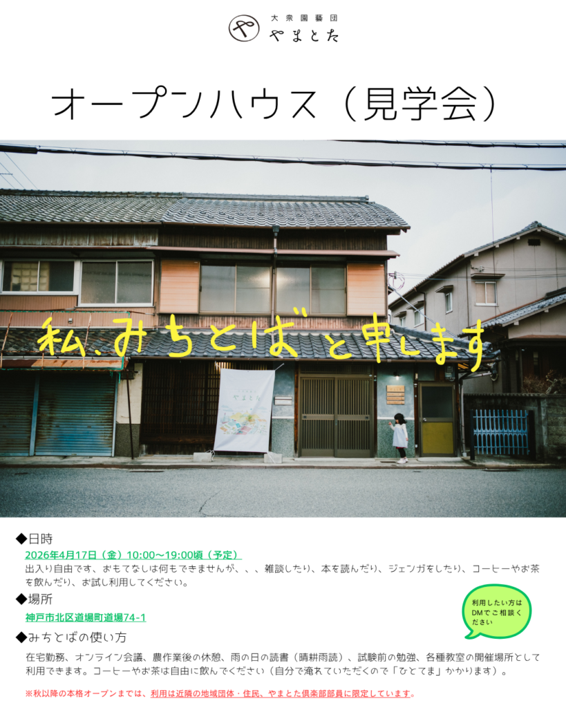 里山へ通じる道を示し、里山に関わる人たちが集まる場になればいいな。
